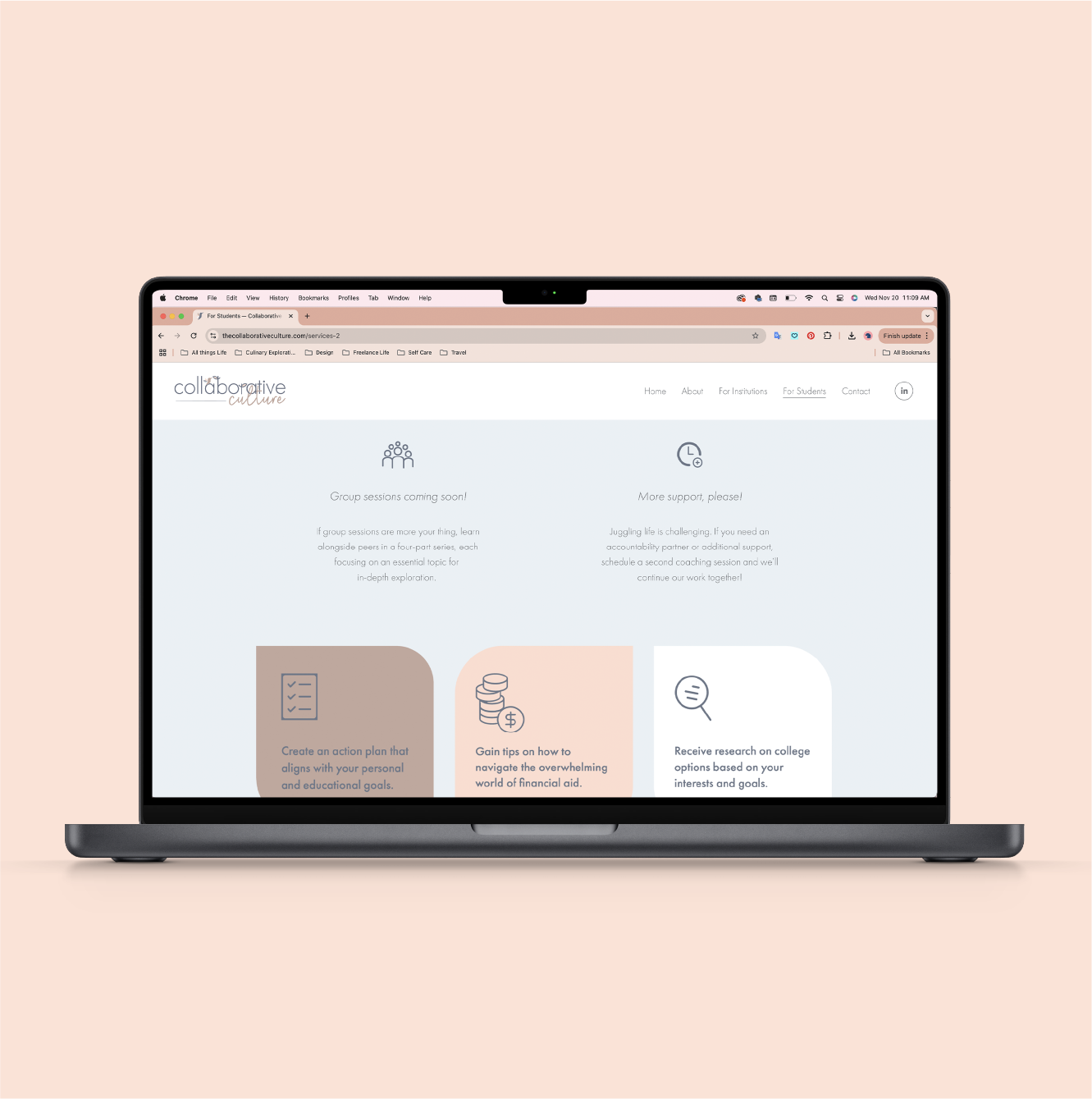 PROJECT GOAL: To build a warm, approachable brand identity for Collaborative Culture, distinct from traditional financial aid consultancies. This project included a new logo, brand guidelines, marketing materials, and a user-friendly website, all designed to reflect a spirit of collaboration, empathy, and empowerment in higher education.