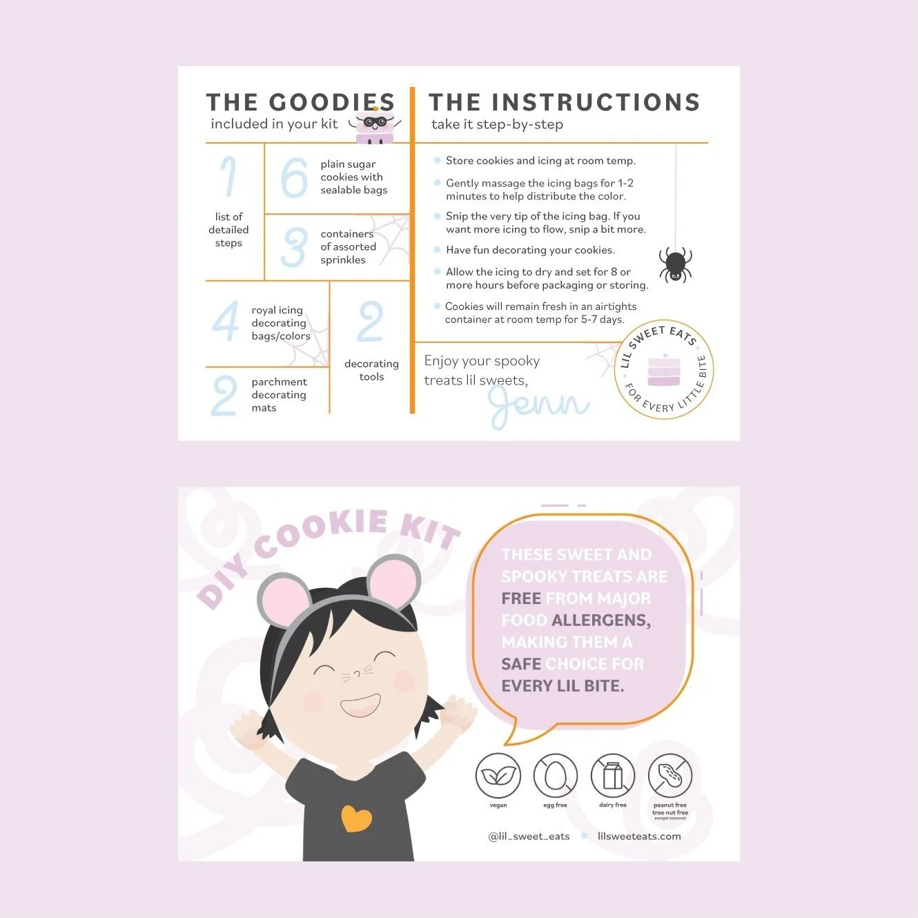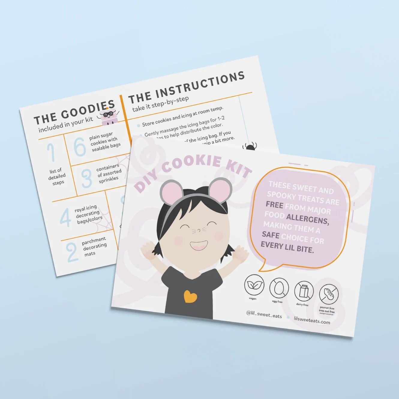 Midway through the design process, we introduced Yumi, the kawaii-inspired brand ambassador for Lil Sweet Eats. Designed with adorable, playful features, Yumi is often accompanied by her sidekick, Sprinkle. Together, they became the face of the campaign for allergy-free desserts, educating and raising awareness about food allergies. Their cute, approachable design helps bring the bakery’s mission to life, making allergy-friendly treats fun, inclusive, and accessible for all.